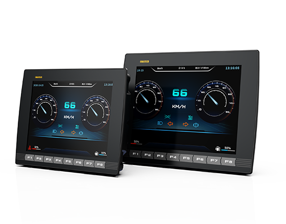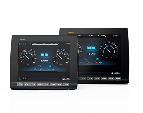 该显示器具备电阻触摸屏,操作更加灵活。CANbus通讯采用自由协议,支持标准帧和扩展帧,实现数据通讯的灵活。该显示器还支持多国语言,方便出口车辆的使用